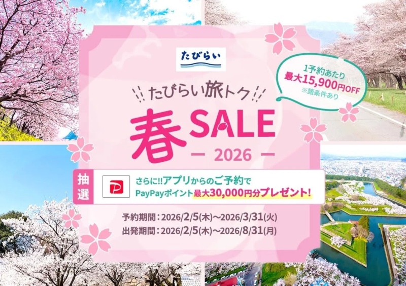 「たびらい旅トク春SALE2026」で春から夏の旅行がお得に