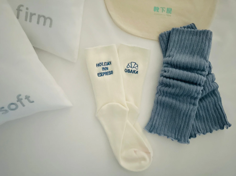 靴下には、ホリデイ・イン エクスプレスの特徴である無料朝食「Prime Morning」を表現したクロワッサンの刺繍と、ホテル名の刺繍が施されたリブソックスが含まれます。さらに、寒い季節の旅行で疲れた足を温めるコットンシルク製の二重アメリブレッグウォーマーもセットになります。これらのアイテムは、客室内でのくつろぎの時間をより快適にするでしょう。