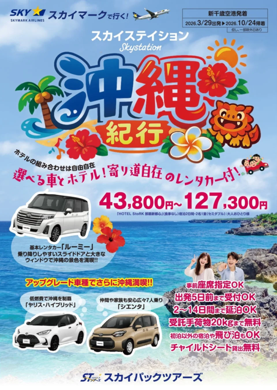 商品名: スカイマークで行く「スカイステイション 選べるレンタカー付 沖縄」【新千歳空港発着】