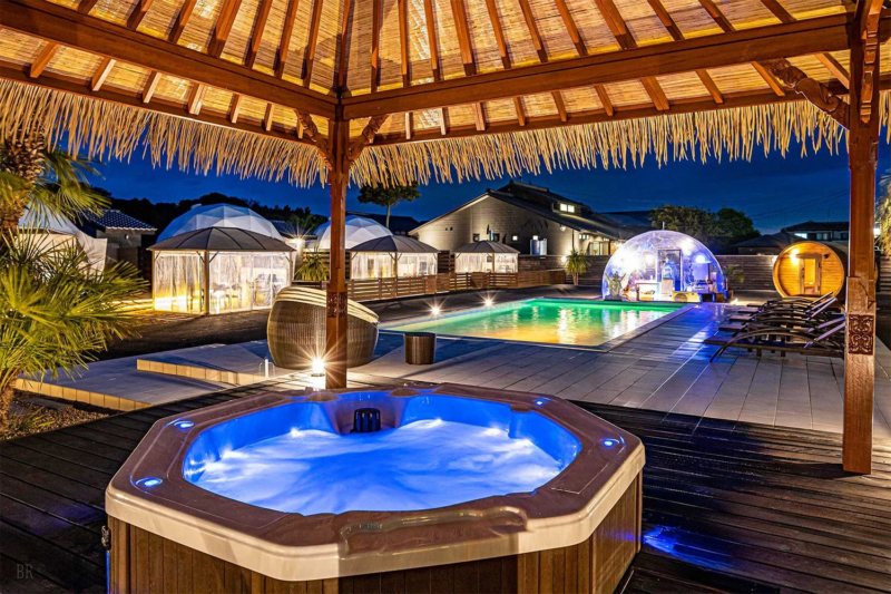 3. 五感を刺激する「ととのい」体験:本格サウナ、プール、ジャグジー、夜の焚き火など、アウトドアの醍醐味が詰まった滞在が提供されます。