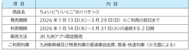 「ちょいと“いいとこ”めぐりきっぷ」の詳細な利用条件や運行不能時の対応、特典の詳しい情報については、必ずJR九州アプリ内の購入画面、または下記のウェブサイトにてご確認ください。