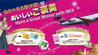 IBEXエアラインズは、2026年1月15日から3月13日まで「IBEX 仙台-名古屋(中部)線 Wキャンペーン」を実施しています。アンケート回答で名古屋の銘菓「ゆかり黄金缶」や「仙台・宮城のご当地グルメカタログギフト」が当たるほか、対象便の搭乗でコメダ珈琲店セントレア店のドリンクがもらえるお得な内容です。冬の旅行にぴったりのこの機会に、仙台と名古屋の魅力を発見しましょう。